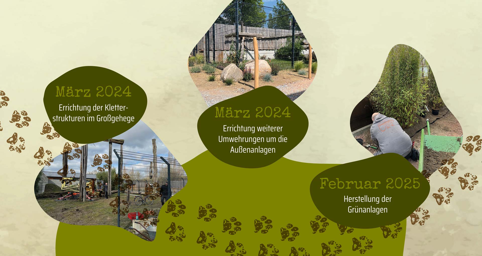 In monatelanger harter Arbeit haben wir auf dem Grundstück gerodet, gebaggert und gebaut, um mittlerweile mehr als 120 Tieren bedrohter Arten ein artgerechtes zu Hause bieten zu können. Wir hoffen durch unsere stetig neu erworbenen Erfahrungswerte in den Bereichen Haltung, Zucht, Aufzucht und Ernährung unserer Tiere zukünftig auch die Forschungsarbeit im Freiland unterstützen und hier ein etablierter Partner im Wissenstransfer sein zu können.