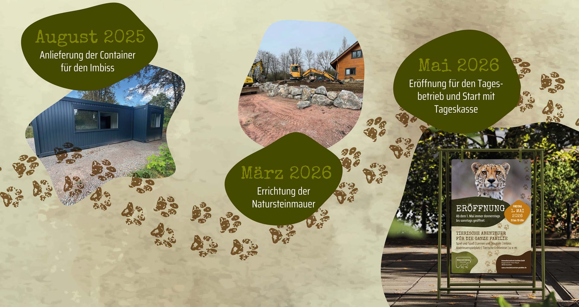Nach der Grundsteinlegung im Frühling 2017 möchten wir unseren Besuchern auf einem mehr als 30.000 m² großen Grundstück zukünftig einen Ort der Erholung bieten um dem „schnöden“ Alltag entfliehen zu können. Es liegt uns am Herzen das Bewusstsein unserer Besucher für den Erhalt unserer Artenvielfalt durch einen umfangreichenden Informationsaustausch bei unseren Führungen zu fördern.